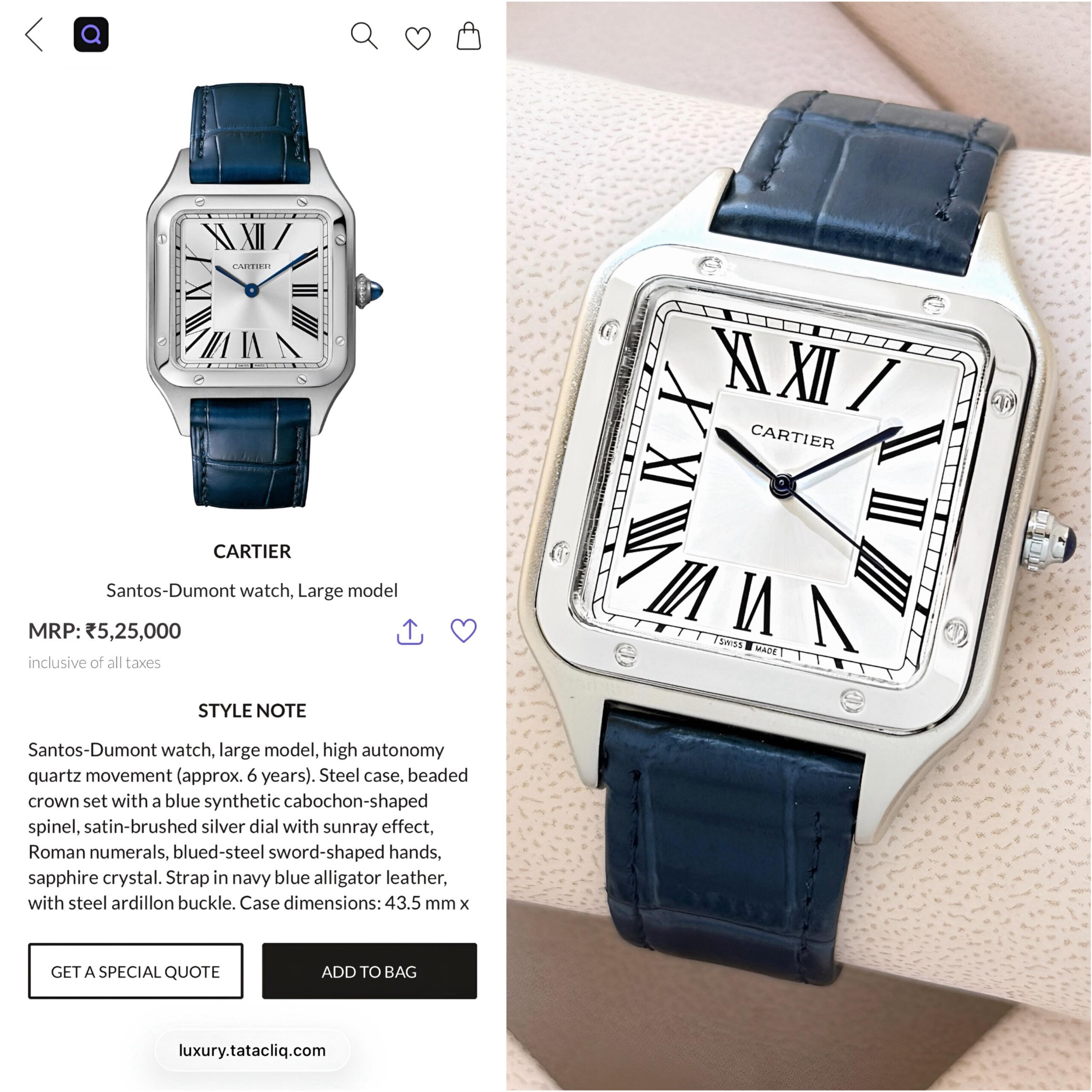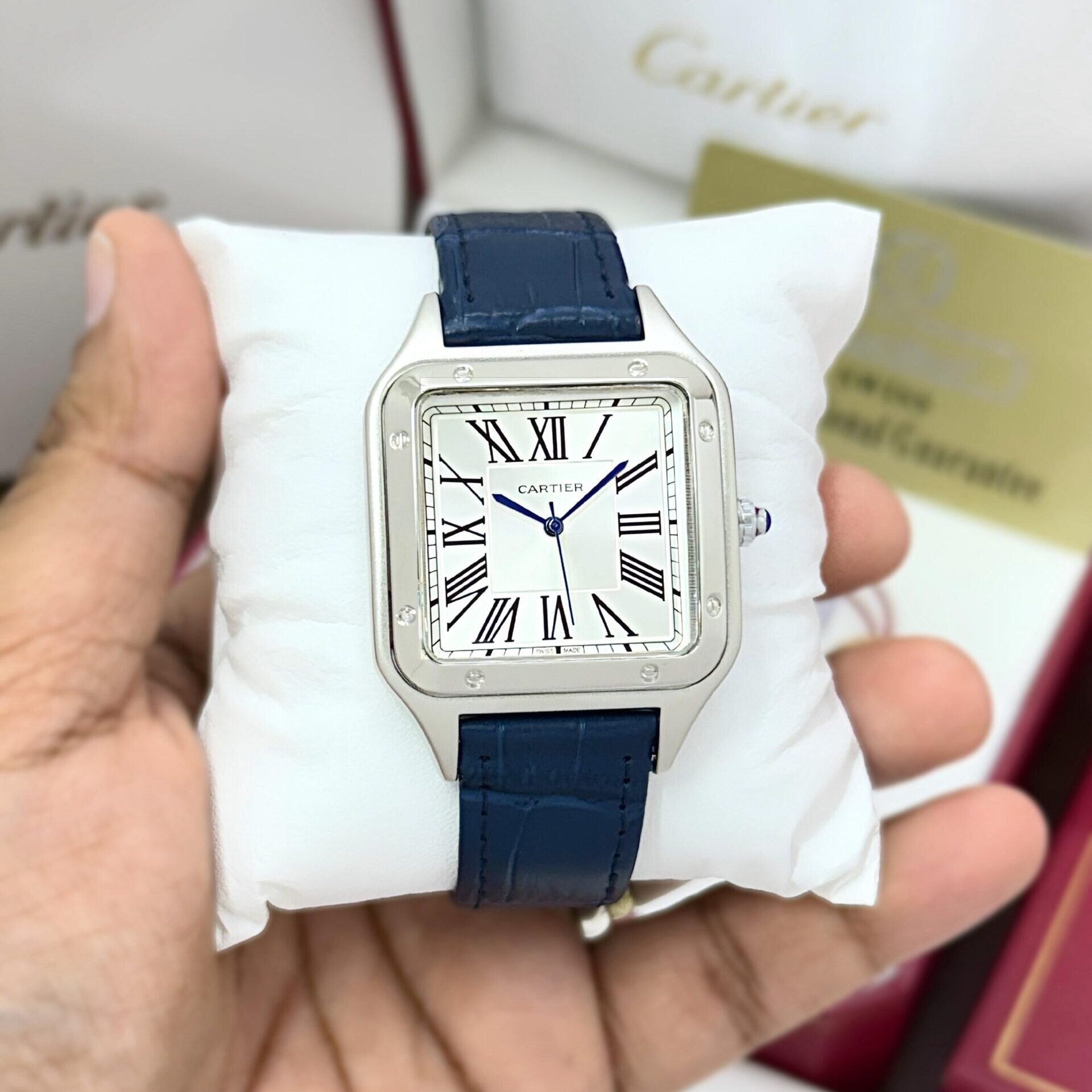 ✅ A true icon of elegance and heritage.The Cartier Santos-Dumont With its signature square case, exposed screws, and minimalist dial defines understated luxury. ✅